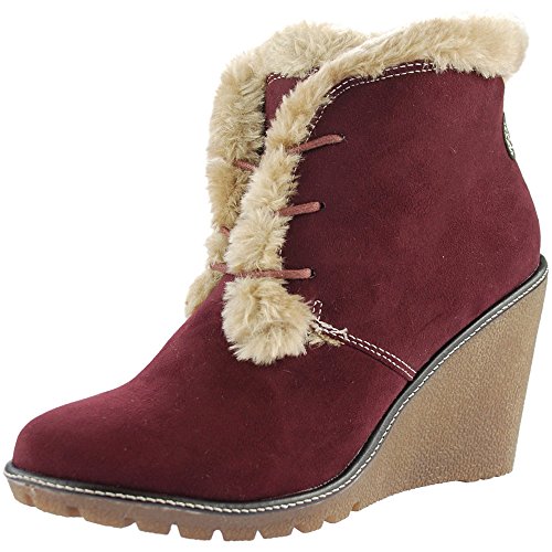 Fully Faux Fur Lined Lace Up Wedge Ankle Boot